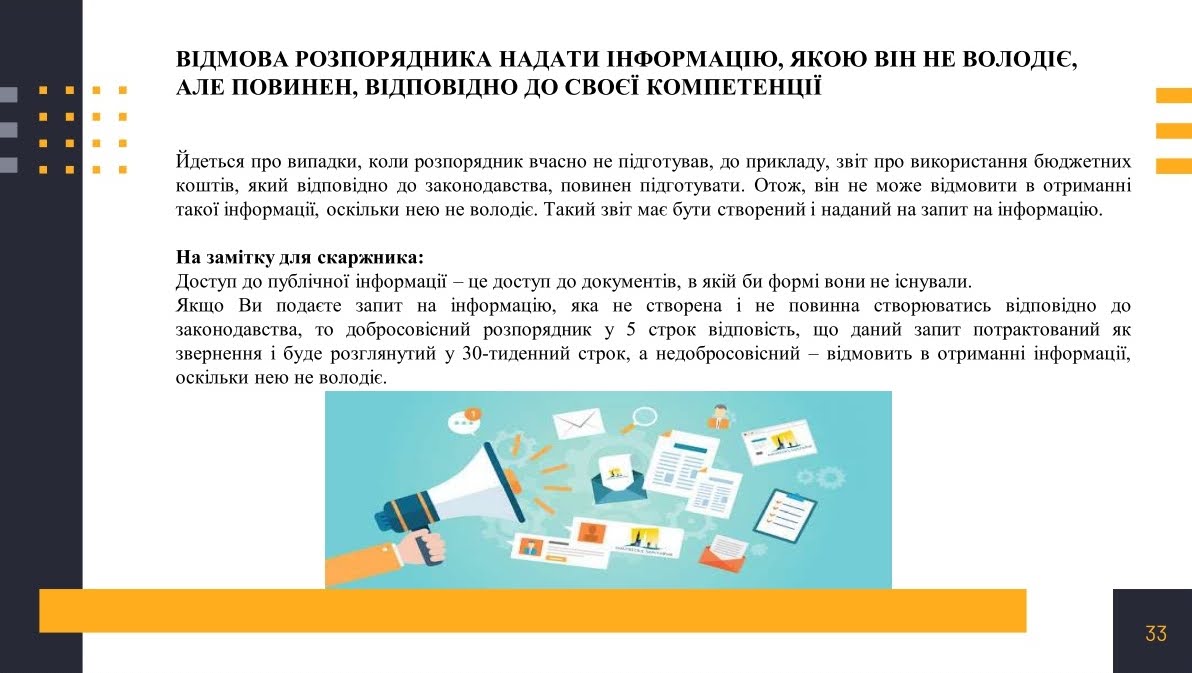 5. ключові права запитувачів та обов’язки розпорядників;