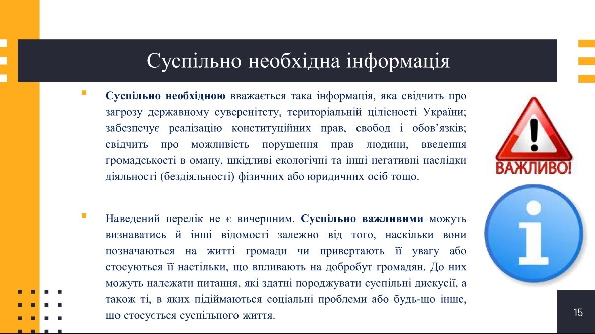 1. поняття «публічної інформації» та її види;