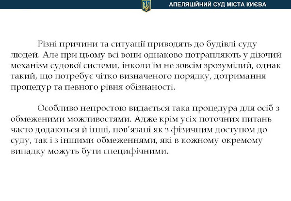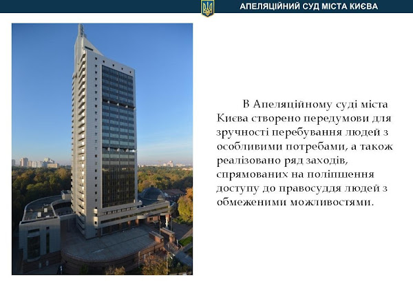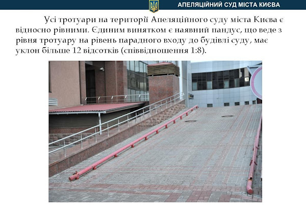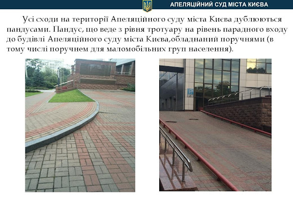 А зараз запрошуємо передивитися презентацію Апеляційного суду міста Києва по архітектурній доступності осіб з інвалідністю та іншх маломобільнх груп населенння.