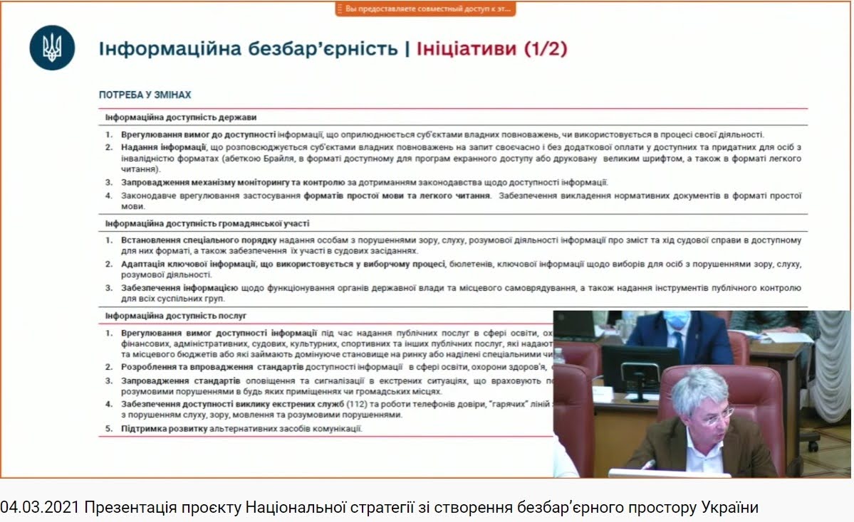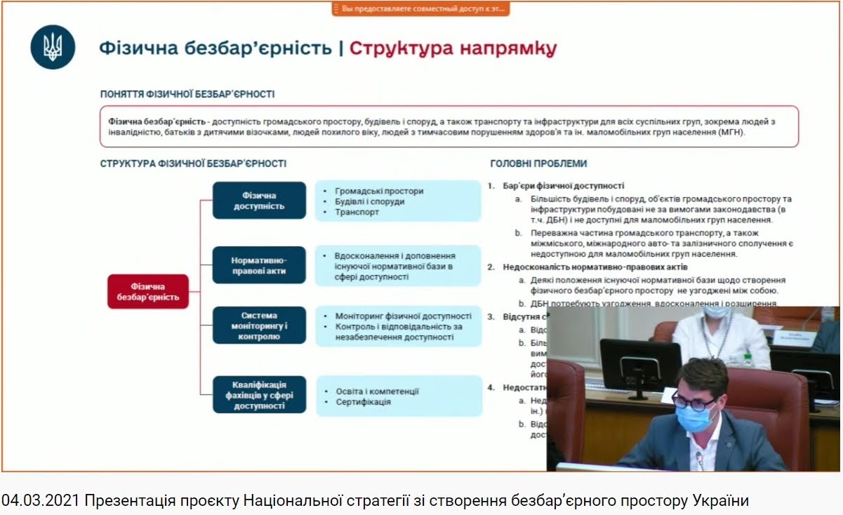 04 березня 2021 року відбулося друге засідання міжвідомчої робочої групи Кабінету Міністрів України, під час якого було презентовано пропозиції до проєкту Національної стратегії зі створення безбар’єрного простору України.