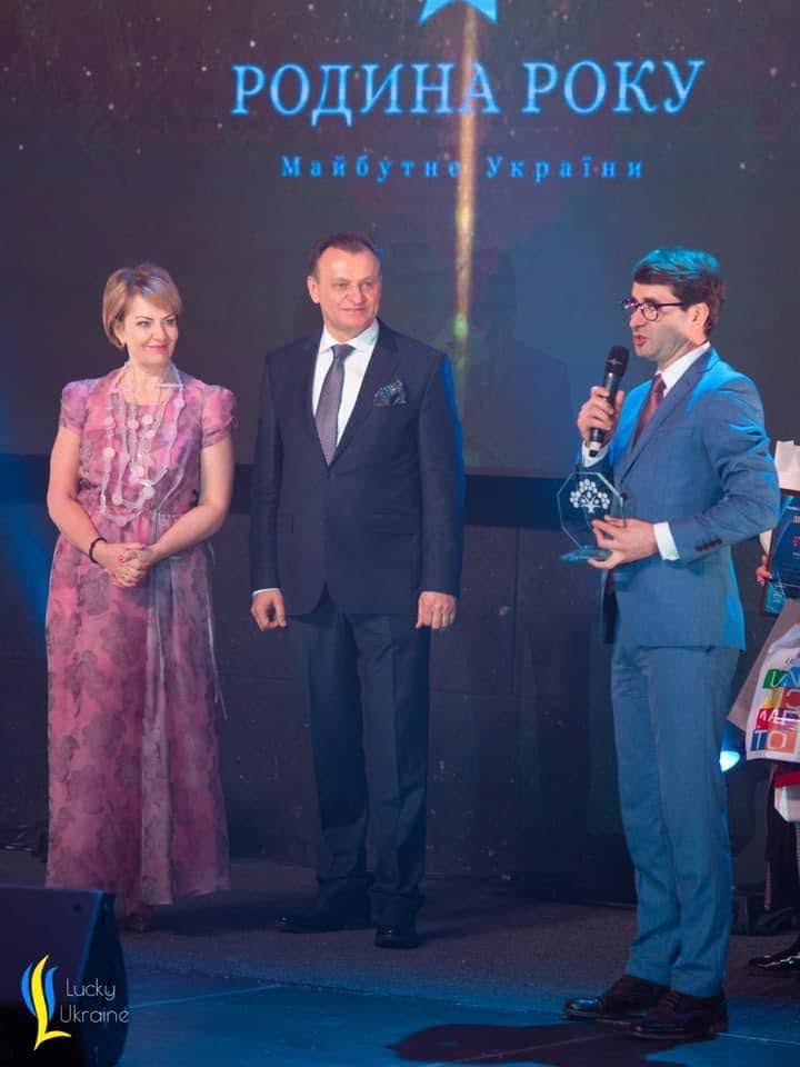 Олександр Вознюк вручив нагороду подружжю Демкурів: Тарасу та Ірині, які понад 30 років будують і родинні стосунки, і власний бізнес, а ще реалізовують соціальні та благодійні проекти, які направлені на розвиток малого та середнього бізнесу в Україні, підтримку молодіжного підприємництва, екологічну трансформацію, культурну дипломатію.