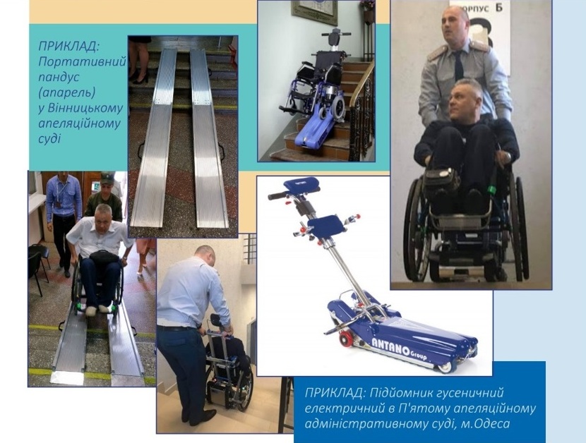 Голова Всеукраїнської громадської організації інвалідів «Правозахисна спілка інвалідів» зазначив, що більшість приміщень, які займають судові установи східного регіону України, були збудовані ще за часів існування УРСР, відповідно ці приміщення не відповідають жодним сучасним вимогам щодо доступності та інклюзивності споруд. Великий відсоток приміщень судових установ взагалі неможливо привести у відповідність до вимог щодо доступності шляхом проведення ремонту через особливості проєктування. Використання інноваційних пристроїв (розумних пристосувань) допоможе оперативно та ефективно вирішити питання архітектурної доступності конкретної судової установи. Наразі в українських судах майже не використовуються інноваційні пристрої та розумні пристосування, які надають змогу забезпечити реальний доступ до правосуддя особам з інвалідністю негайно, натомість проводяться дороговартісні та довготривалі ремонтні роботи, які часто по завершенню не відповідають потребам осіб з інвалідністю.