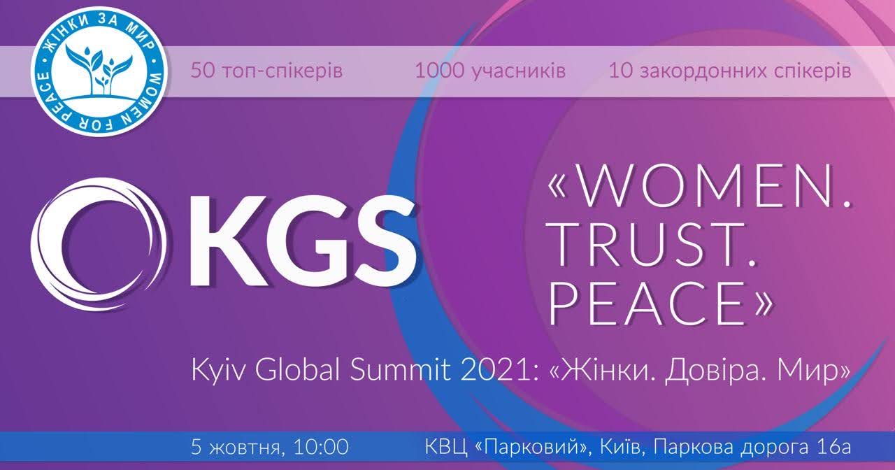05 жовтня 2021 року у м. Київ відбувся щорічний Kyiv Global Summit «Woman. Trust. Peace» – платформи пошуку нових ідей та рішень для розширення впливу жінок, побудови інклюзивного суспільства, досягнення миру і відновлення довіри в постпандемічному майбутньому.