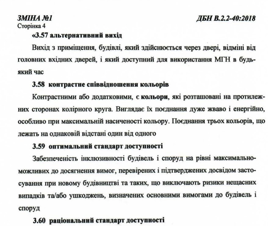 Нагадаємо, що ДБН В.2.2-40:2018 відносяться до нормативних актів технічного характеру і пошируються на проектування, будівництво нових та реконструкцію, реставрацію, капітальний ремонт та технічне переоснащення існуючих житлових будинків та громадських будівель та споруд, а також на розумне їх пристосування з урахуванням потреб маломобільних груп населення.